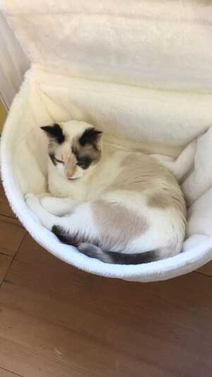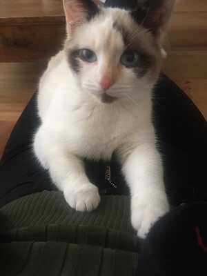 ? Otje is een kruising britse korthaar-maine coon, heeft blauwe ogen, zwarte tejening op haar kopje en is verder wit met bruin (zie foto). Alvast dank!